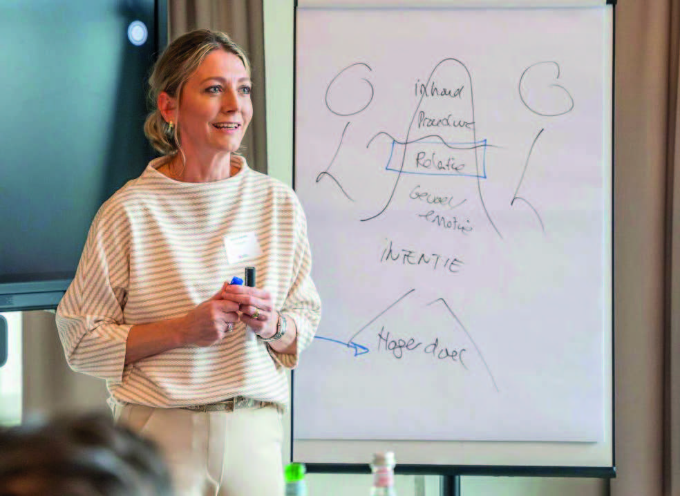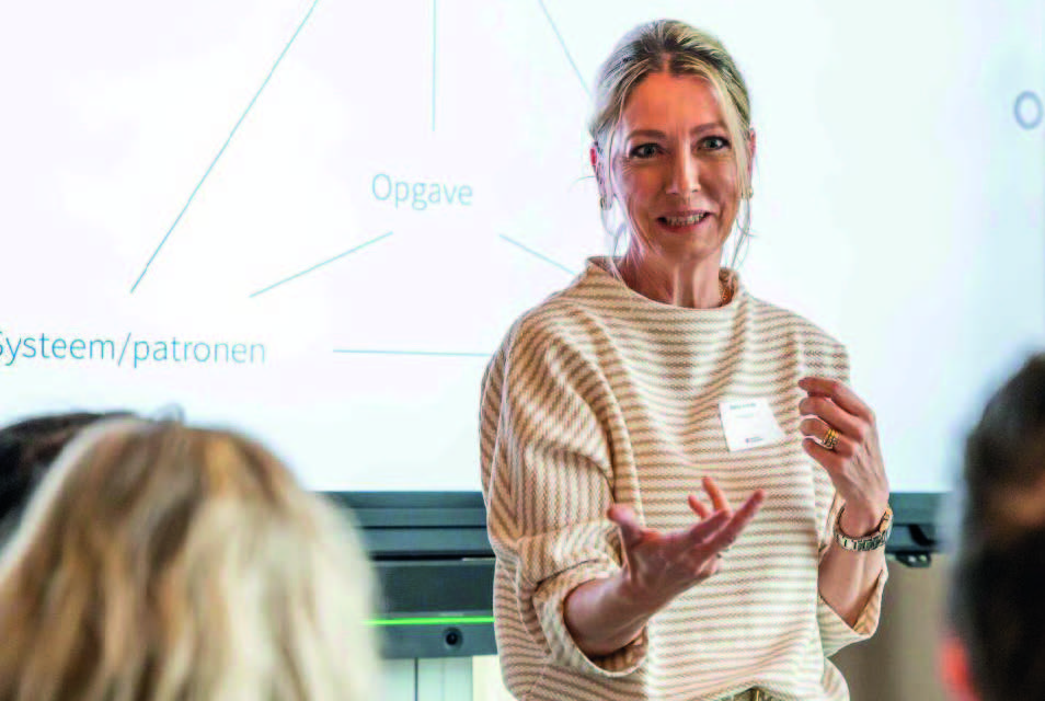 Maaike Arends citeert in dit verband graag een van haar collega’s: ‘De huidige tijd vraagt van leiders om tegelijkertijd in en aan de organisatie te werken.’ Dat vereist een specifieke mindset, want aan de organisatie werken wordt nog vaak gezien als iets wat je erbij of ernaast doet. “Veel van onze deelnemers zijn operationeel actief, waardoor ze regelmatig worden overgenomen door de hectiek van alledag. Ze worden fire fighters, brandjesblussers, vaak tegen wil en dank. Werken aan de organisatie betekent: ook steeds reflecteren op hoe het gaat. Wat gaat er goed en hoe kunnen we dat benutten? En: wat kan er beter, wat leren we hiervan en hoe hebben we dat bij te sturen? En dat allemaal, nogmaals, in de dynamiek van alledag. Ga er maar aan staan: de business laten draaien en tegelijk het bewust werken aan de veranderopgave.“